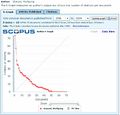 V databázi Scopus se nachází autoritní seznamy autorů a pracovišť. Pro každého autora či instituci jsou zvlášť zpracovávány analytické údaje. V profilu autora jsou k dispozici poměrně detailní informace, jako variantní názvy jména, afiliace aktuální i historické, publikační historie, odkazy na všechny články, předmětná oblast autora, či seznam spoluautorů. Z analytických dat je k dispozici počet článků, referencí a citací, h-index autora a přehled článků a citací za celou publikační historii podle jednotlivých let. Data autora lze jednoduše analyzovat na tzv. h-grafu (obr. 2), který graficky znázorňuje přehled citací podle článku. K dispozici jsou také grafy publikovaných článků v jednotlivých letech a totéž pro citace. H-graf se dá aplikovat na jakoukoliv sadu výsledku, tedy i na sadu článků, časopis aj.