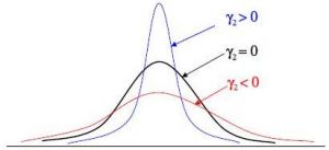 Podobně jako u koeficientu šikmosti, i zde γ2 = 0 značí rozdělení normální a odchylky značí, že rozdělení je špičatější (kladný koeficient) nebo plošší (záporný koeficient).