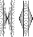 - Heringova figura - horizontálně – vertikální iluze – tendence posuzovat svislé úsečky jako delší než vodorovné, vliv kontrastu