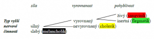 - Černá žluč – melancholik (snadno zranitelný, hluboké prožívání, chabě reagující)