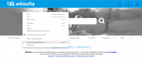 - Ke kódu se uživatelé dostanou, skrze kliknutí pravým tlačítkem na stránku. Následně stránku uloží jako HTML soubor. Pro přehledné zobrazení kódu je nutné otevřít soubor v textovém editoru.