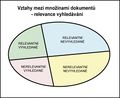 - Věcná (obsahová) relevance je shoda obsahu informačního dotazu s obsahem vyhledaného dokumentu. Ke zjišťování relevance se používají koeficienty (míry) úplnosti a přesnosti. [8]