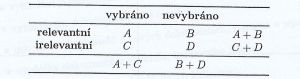 C = počet dokumentů irelevantních i informačnímu požadavku, ale systém je při vyhledávání vybral