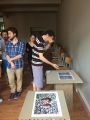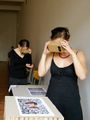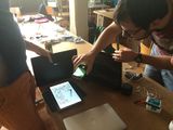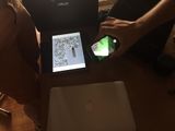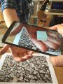 V prostorách Paralelní polis jsme vytvořili instalaci (viz obrázek č. 25) pomocí kartonových bloků, na jejichž horní plochu jsme umístili klíčovací podložky, Cardboardy se smartphony a vše jsme doplnili popisky. Na začátku naší expozice jsme projekt přítomným krátce představili, popsali postup a podali instrukce k jednotlivým stanovištím. Diváci poté přistupovali jednotlivě a prohlíželi si, obě stanoviště.