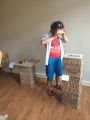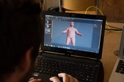 Druhá instalace potom poskytovala účastníkům možnost prohlédnout si ve virtuální realitě modely dvou účastníků workshopu, které byly pořízeny pomocí 3D Scanneru Kinect a následně naklíčovány do naší virtuální reality. Díky trojrozměrnosti modelu (viz obrázek č. 21) jsme mohli umístit model do prostoru a jeho obcházením potom vytvořit iluzi přítomnosti v prostoru. Princip je vidět na fotografiích (viz obrázek č. 23).