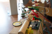 09. S pomocí návodu k obdobnému projektu od Stiana Eikelanda (https://blog.eikeland.se/2015/04/24/banana-piano/) upraven kód v Arduino softwaru - v nové verzi zelenina vydává tón při dotyku (Arduino již není nastaveno na měření odporu, nýbrž kapacity; kompletní kód finálního nastavení výše).