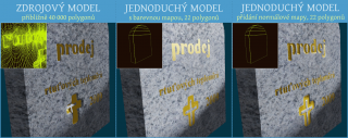 Obrázek 3.2: Využití normálové mapy pro dosažení iluze hloubkového detailu na plošném povrchu