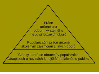 Popularizační pyramida, str. 207 (vlastní zpracování): ČMEJRKOVÁ, Světla, František DANEŠ, Jiří KRAUS a Ivana SVOBODOVÁ. Čeština, jak ji znáte a neznáte. Praha: Academia, 1996.