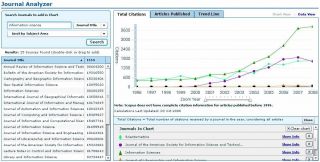 Analyzátor časopisů umožňuje vzájemně porovnávat citace a publikované články v jednotlivých časopisech (zdroj: www.scopus.com)
